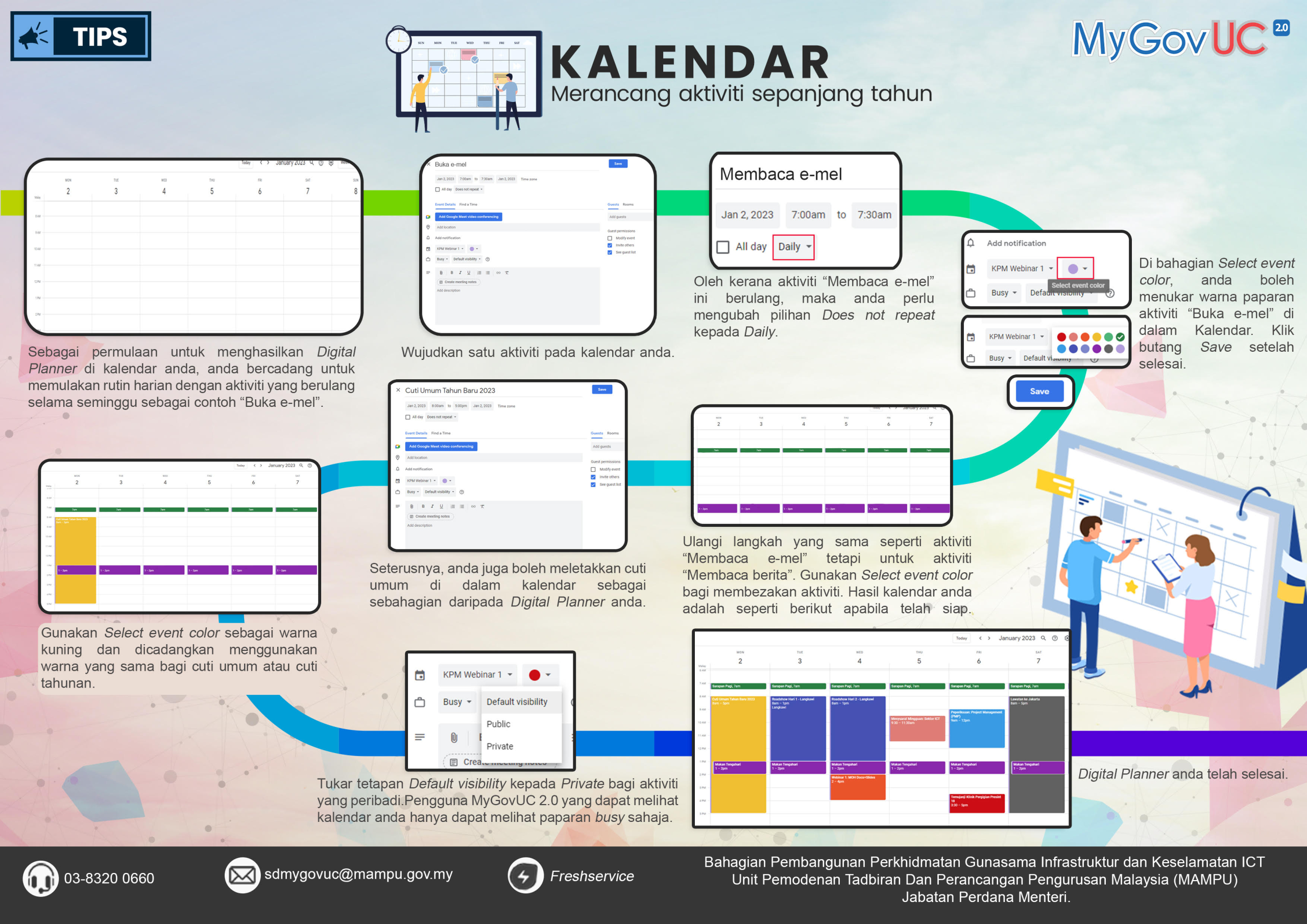 Dapatkan maklumat mengenai tatacara penggunaan Perkhidmatan MyGovUC secara infografik