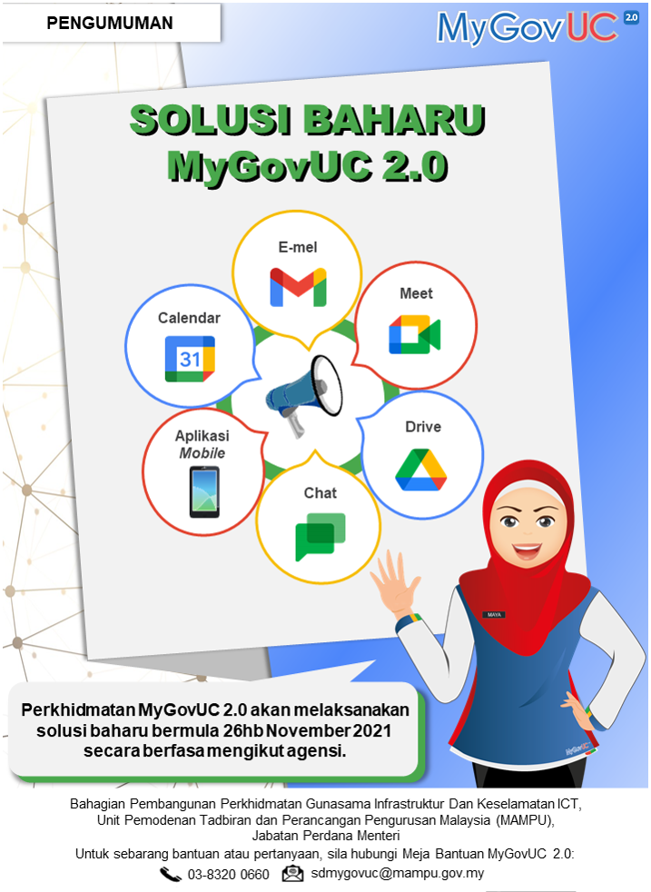 MyGovUC 3.0 adalah Perkhidmatan Komunikasi dan Kolaboratif Bersepadu yang diuruskan secara berpusat di Jabatan Digital Negara.